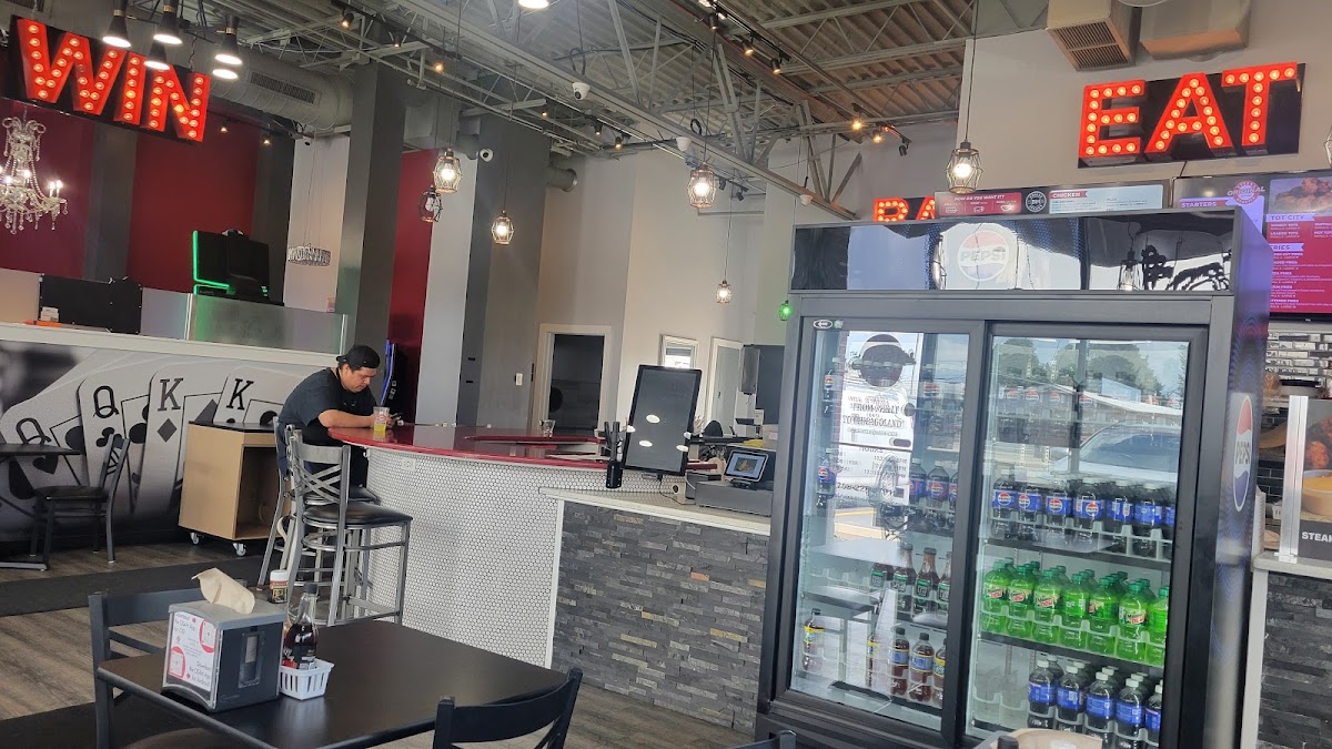 Nice place on a very congested stretch of road. Updated inside with a casino area in the same space. Friendly service. I got the full size original cheesesteak with white American cheese and grilled onions. It is a very good sandwich. Their bread is great for this type of sandwich and they are generous with the meat! Good place. I recommend it.